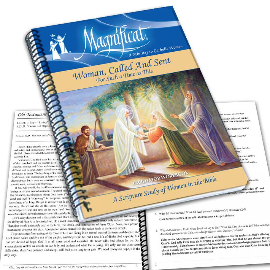 This Magnificat Bible study has received the Nihil Obstat and the Imprimatur (©2021). It is a study of women in Scripture including an Introduction, ten Old Testament and ten New Testament lessons. The historical context and significance of the scriptures come alive in this Bible study with practical applications for present day situations.