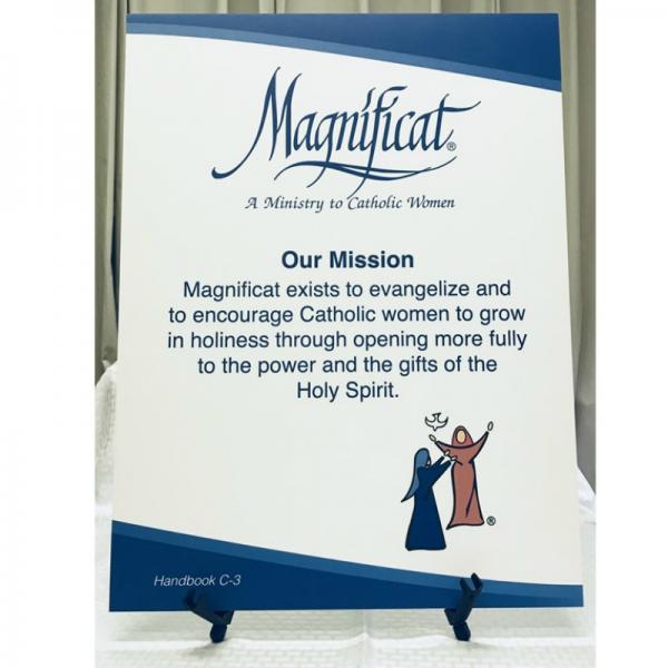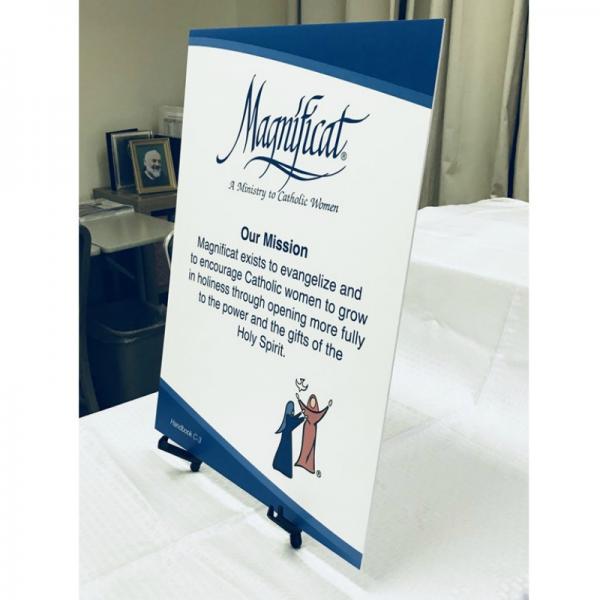 Use this Mission Board to attractively display the mission of Magnificat at all your meals and other events!! The board is 18" W x 24" H with blue text and the color logo on a white background. It is made of 3mm thick PVC material which makes it very lightweight and durable - it will last a long time!