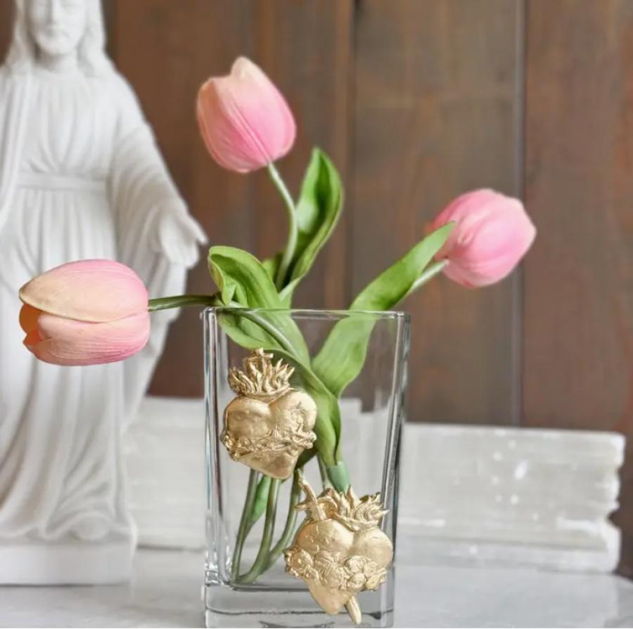 Lovely vase with hand gilded BeeStill™️Sacred Heart and Immaculate Heart clay intaglios.