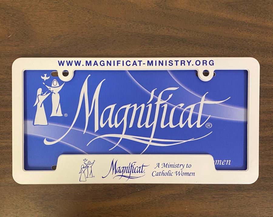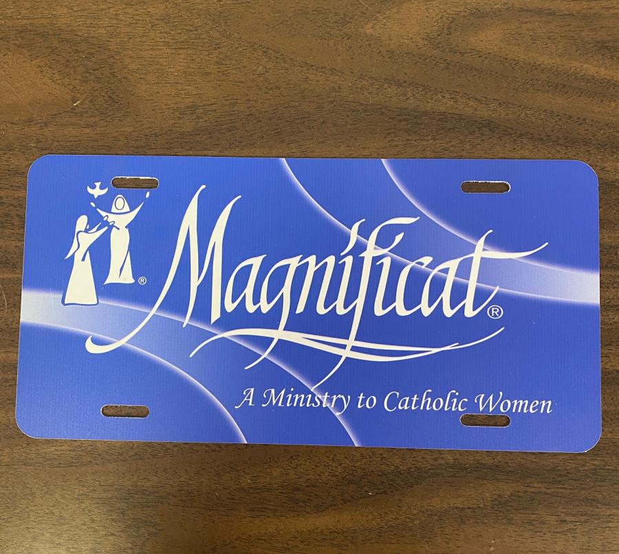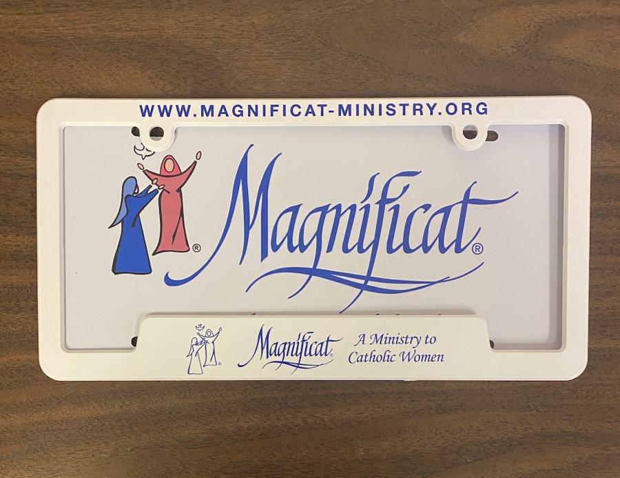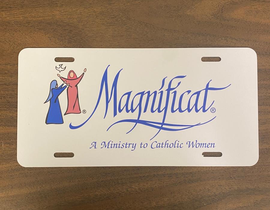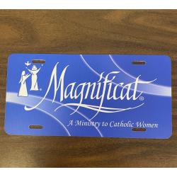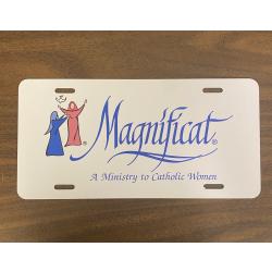 Many states allow a custom plate on the front of your vehicle. If you have that opportunity, evangelize on the road with an official Magnificat Logo license plate! This sturdy, standard sized 12" x 6" metal, non reflective custom plate is the perfect way to spread the grace of the Magnificat Ministry wherever you travel. Choose from a blue or white background!